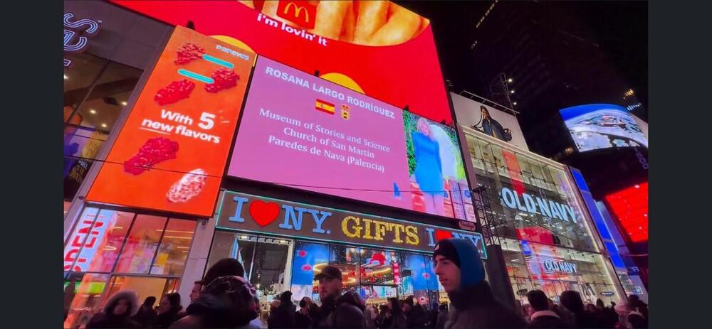 No es fácil aparecer en el billboard en Times Square de Nueva York el día de Año Nuevo, es decir, donde se visualizan los mejores anuncios del año. Pues Rosana Largo, responsable del Museo de los Cuentos y la Ciencia de Paredes de Nava, el primer día del año y pocos meses después de aparecer en el Nasdaq y en la propia torre de Times Square, lo ha vivido en primera persona.